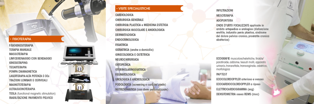 Servizi disponibili: visite specialistiche, fisioterapia e riabilitazione